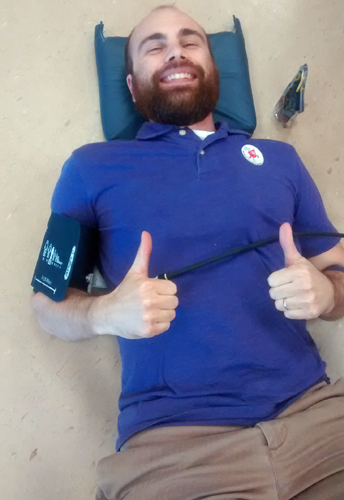 My wife and I signed up to take part in the Mississippi Valley Regional Blood Center (MVRBC) blood drive held at the church I work for. I’ve always aced blood donations; I can’t remember any instances where I wasn’t able to successfully give. The concern going in was that my wife would struggle, since she’s had trouble donating in the past. Coming into yesterday, she had a 50% success rate, and one of those “successes” involved a discovery that she’s allergic to alcohol wipes. She’s faced some hurdles in donating blood, but she keeps coming back to try and try again.