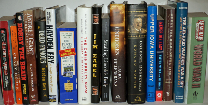While searching for my next book to read (spoiler alert: Food: A Love Story by Jim Gaffigan), I asked myself, “Could I actually name my favorite books if someone asked me?” So I set out to create a list, which you’ll see below (you’ll also see that some of the covers have scuff marks in the upper right corner; those are the remnants of Half Price Books price tags). Instead of trying to rank them all, I labeled them based on what kind of reading mood you’re in. Here are my selections: