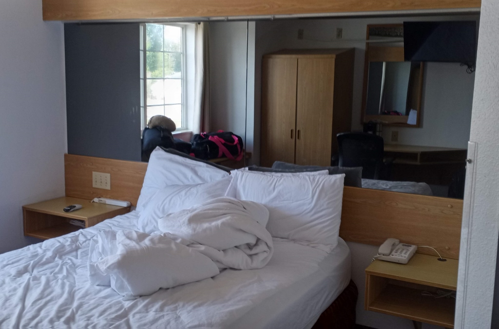 These next two images aren’t as much scenic as they are peculiar. On the first night of our trip, we stayed at Boarders Inn in Brush, Colorado. Nice people, reasonable rate, good stay…. but there was a mirror behind the bed in our room. It’s supposed to make the room appear larger than it really is, but it reminded me of one of the bars we went to in college. The first time there, I was told, “Don’t touch the mirrored walls” because, well, horny drunk couples do certain things up against those mirrors. We took the same approach with this hotel room and didn’t touch the mirror. But I did make sure to do a Hulk Hogan flex.