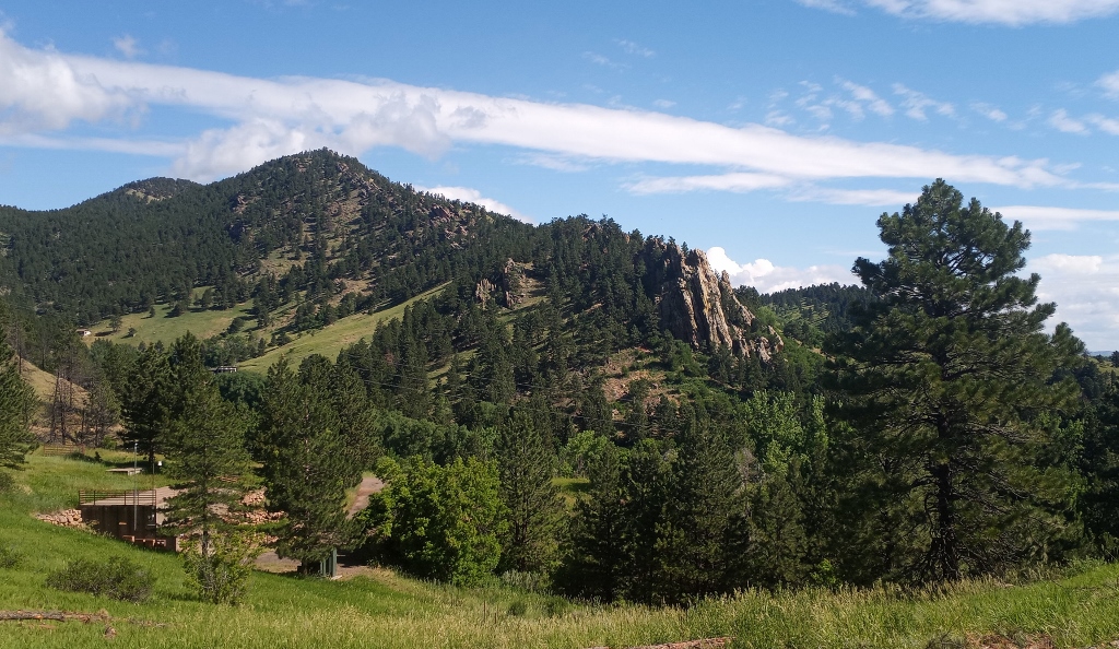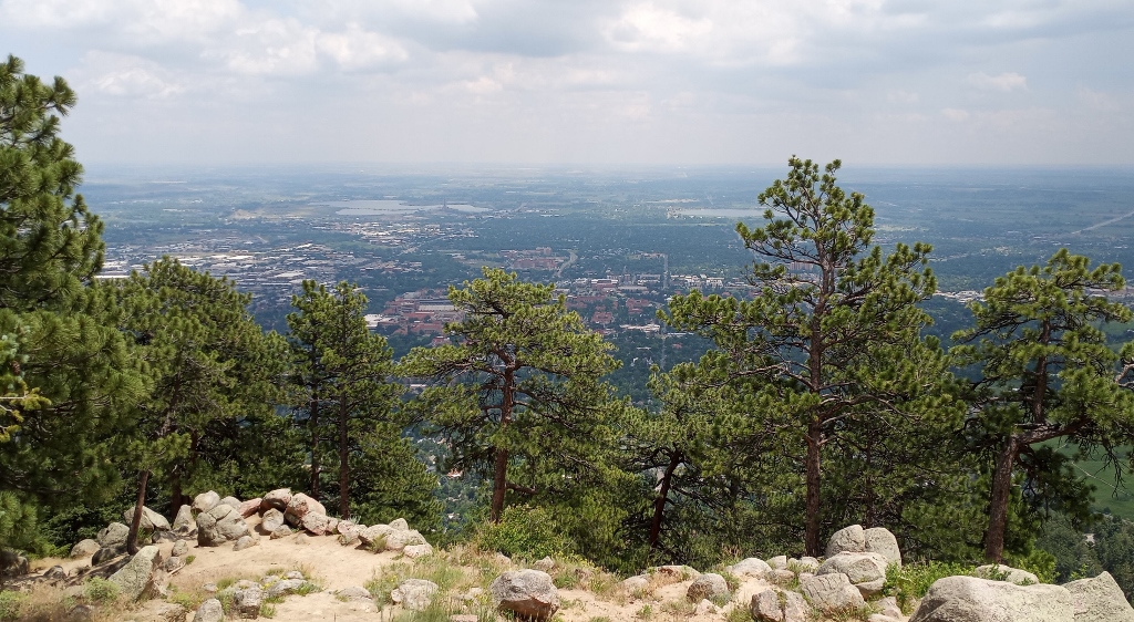 …the entirety of Boulder, including the University of Colorado’s Folsom Field (just visible behind the tree at center). Plus, on clear days, you can make out the towering buildings of downtown Denver.