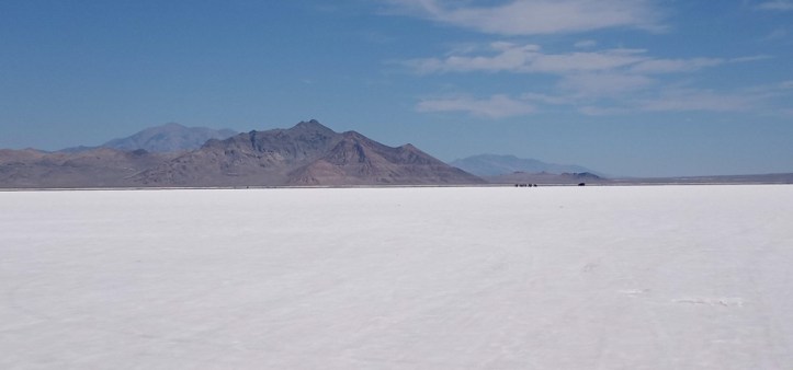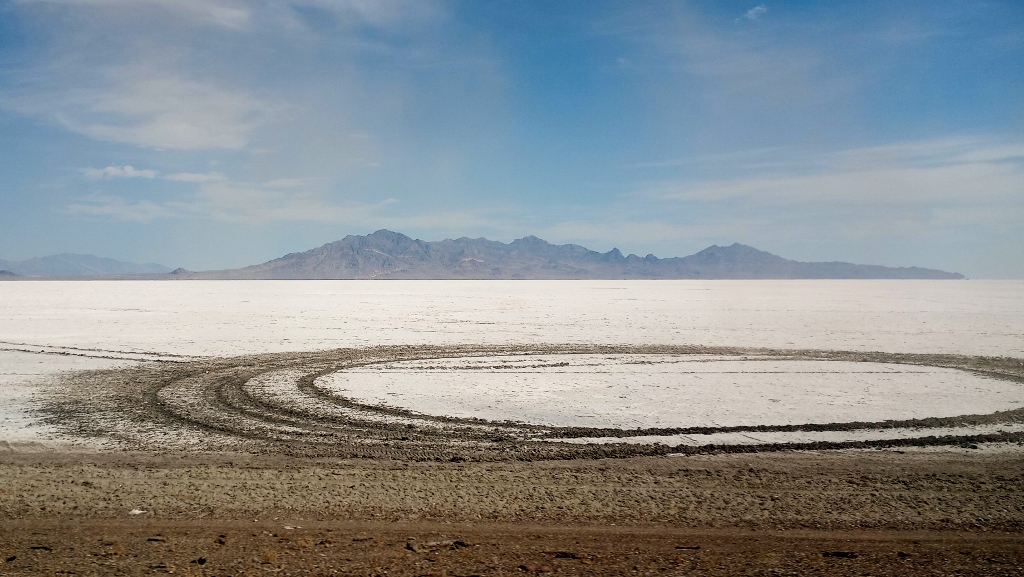 Along Iowa’s interstates, we’re accustomed to seeing ditches and fence lines. But in the middle of Utah’s salt flats, you see neither. You can drive right off the road and into the flats pretty much wherever your heart desires. Going 80 on 80 and feel like tearing some donuts into the bright white landscape? Sure, go for it.
