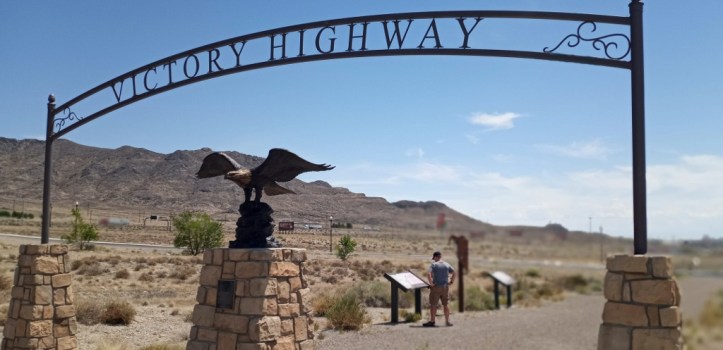 The Victory Highway monument in Wendover, Nevada marks a roadway used in the early 20th century. As I read the plaques, I was standing on a stretch of the road that was used from 1925 until the 1940s. The original eagle markers were to be placed at each county line, memorializing those who had given their lives in World War I.