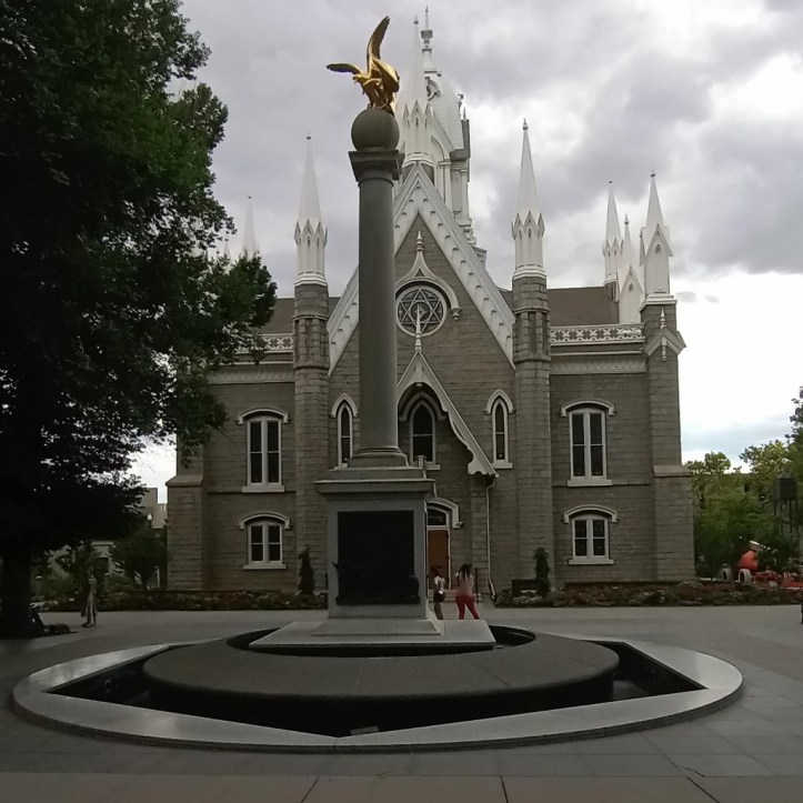 We stopped at Temple Square in Salt Lake City to see the Mormons’ historical buildings. This is the Salt Lake Assembly Hall, with the Seagull Monument in front of it. Let me add that we enjoyed Salt Lake City. Traffic was light and we found a parking spot right across the street from Temple Square.